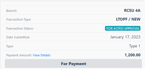 Congratulations, when your Transaction Status is “For Printing/Release” you can now head to the FEO or RCSU you have selected and submit your documents to claim your LTOPF.