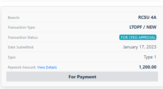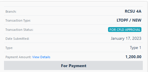 Once your application is approved, your status will change to “For Payment” and you will be provided with a reference number. From there, you can proceed to make your payment and schedule an appointment to complete the process.